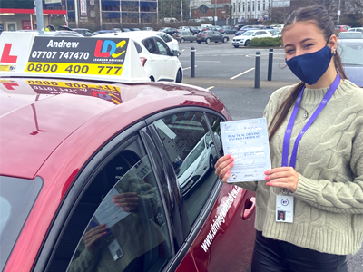 My weekly lessons with Andy helped me gain much more confidence with driving and his constant feedback throughout the lessons helped me to pass my test with no faults. The LD system helped me to consolidate what I had learnt in the lessons, helping me to progress quicker.