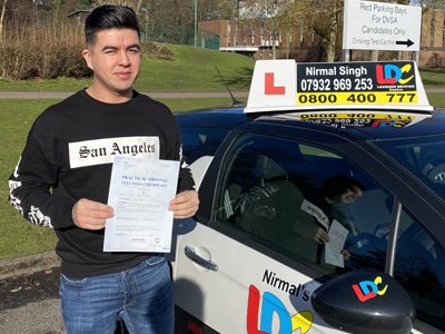 "I passed my test after 12 lessons with Nirmal. I had driven a car in Afghanistan but not in the UK. I would like to thank Nirmal for all the help and support he gave me. I will recommend him to my friends."